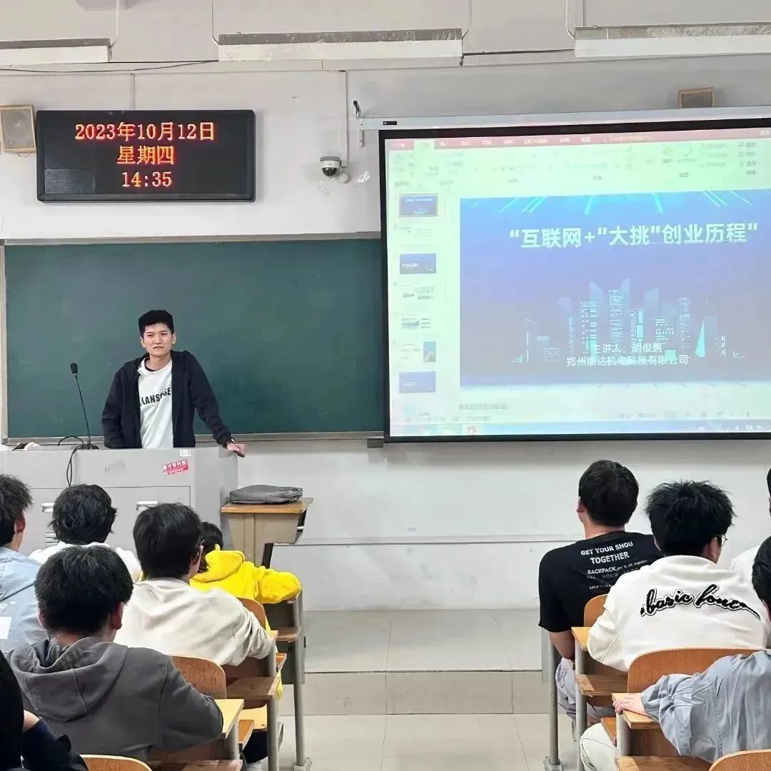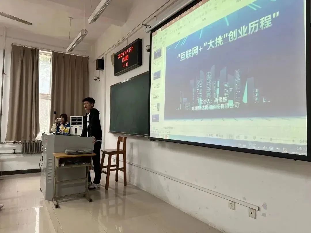 胡俊鹏还分享了立足所学专业,创办科创型企业的心路历程和发展经验,介绍了公司对老员工创新创业的扶持政策,”炫耀”了自己读书和创业期间所收到的来自公司各方面的支持和帮助,鼓励同学们把握好大学时光,为自己人生路上的创新创业打下坚实基础。