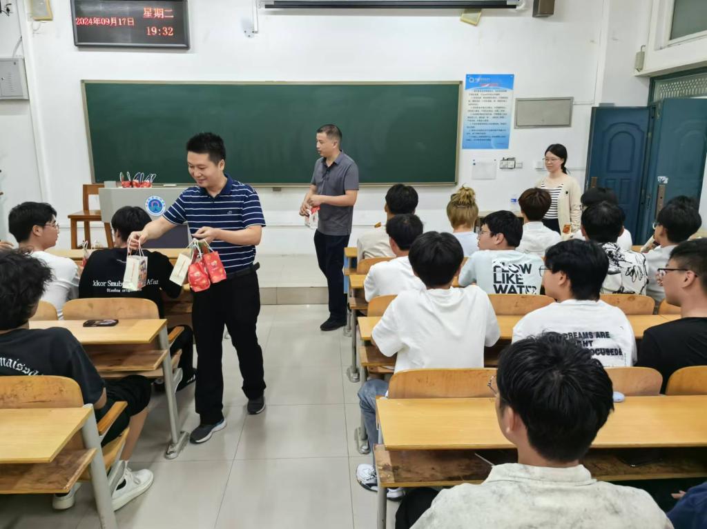 秋风送爽,丹桂飘香,又是一年中秋至。9月17号晚,在这个寓意团圆与美好的传统节日里,为了让远离家乡、初入大公司园的大一新生感受到家的温暖,pa捕鱼官方网站经理兼党总支书记王伟、副书记董岳磊及各位老师带着满满的祝福逐一走访了各个新生班级,与同学们共度了一个难忘的中秋佳节。