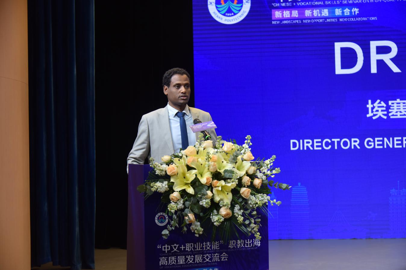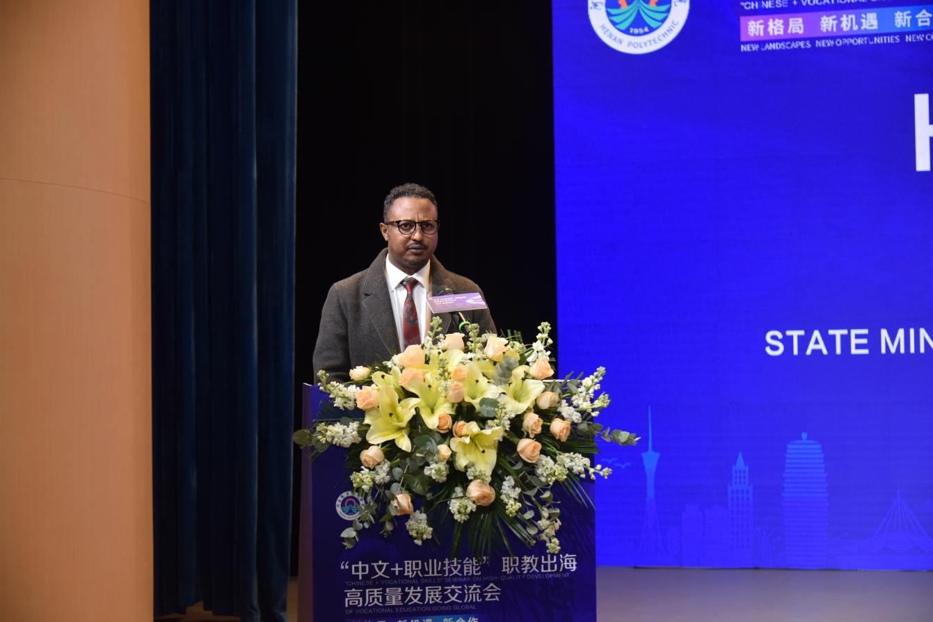 埃塞俄比亚劳动与技能部部长顾问哈格斯先生在致辞中高度赞扬了中国在职业教育领域取得的显著成就,肯定了“中文+职业技能”项目对高素质技能人才培养和经济繁荣发展的意义,表达了中埃双方进一步深化合作的愿景。他希望,双方能够在继续教师培训、课程开发、员工交流等方面展开深入合作,共同推动“中文+职业技能”项目的落地实施,为埃塞俄比亚培养更多具备中文沟通能力和职业技能的国际化人才。