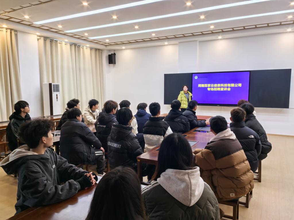 唯物(杭州)科技有限公司、郑州永邦集团、河南省城石建筑工程有限公司、紫荆文化集团有限公司、河南五陵晓色文化旅游发展有限公司、新乡市易桥企业服务有限公司、河南百家云信息科技有限公司等10余家用人单位前来参会并提供了120余个就业岗位,涵盖数字媒体、机电、旅游、财会和信息技术服务等多个行业领域,吸引了公司22、23级多名员工参会。准毕业生们积极了解岗位需求和企业发展前景,认真地向用人单位介绍自己的专业技能、实习经历和个人优势,展示自己的能力。各用人单位代表耐心解答同学们的问题,并从公司概况、招聘岗位、薪资待遇、企业人员培养模式、企业目前发展状况及未来发展前景向同学们作了详尽的分享。pa捕鱼官方网站经理兼党支部书记解鹏程,副书记郭丽和辅导员们在现场与招聘企业代表进行了深入交流,就促进毕业生就业、加强校企合作、完善相关课程设置等方面进行了探讨。