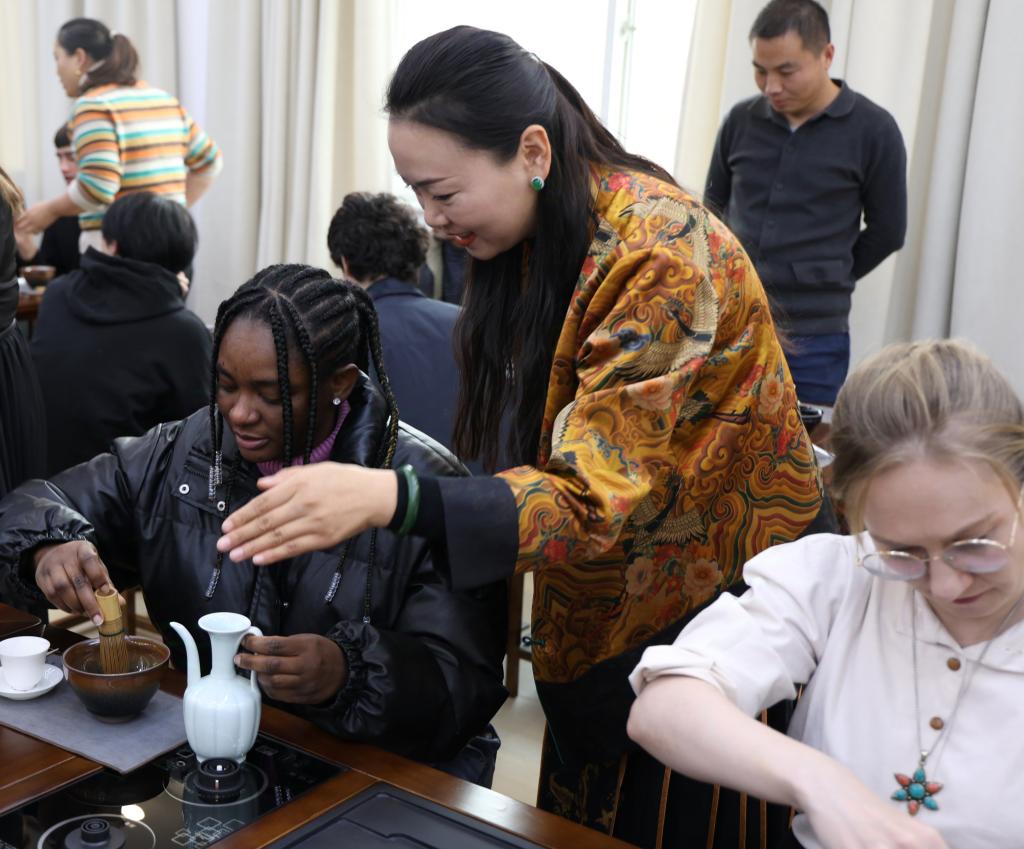 中国文化体验周系列活动精心策划了五期主题,涵盖了“点茶艺术”、“探索非遗技艺:剪纸与变脸”、“书法体验”以及“包饺子、做灯笼、粘红包”等多项活动内容,展现了中国传统非遗手工艺的魅力,还为中外师生提供了深入了解中国文化的宝贵机会,促进了国际间的文化交流与实践。师生们纷纷表示,通过活动更加了解中国文化,将来也会成为积极传播中华文明的友谊使者。