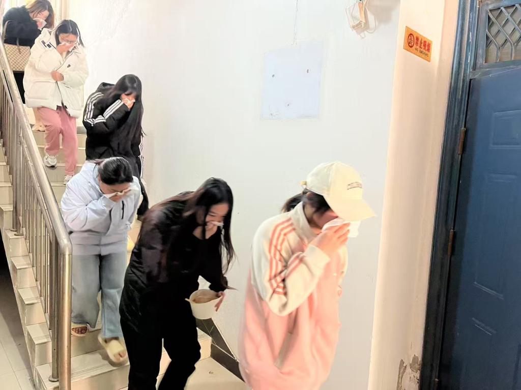 在实践演练阶段,公司分别在健行楼、附3栋男生宿舍楼、10号女生宿舍楼等组织开展了多场景应急疏散演练。参演师生严格按照“掩住口鼻、低姿前行、有序撤离”的操作规范,顺利完成疏散任务,演练过程组织严密、流程规范。解鹏程经理在总结讲话中强调,消防安全是校园安全工作的重中之重,并对全院师生提出三点要求:一要牢固树立安全责任意识;二要熟练掌握消防应急技能;三要严格落实安全管理制度。