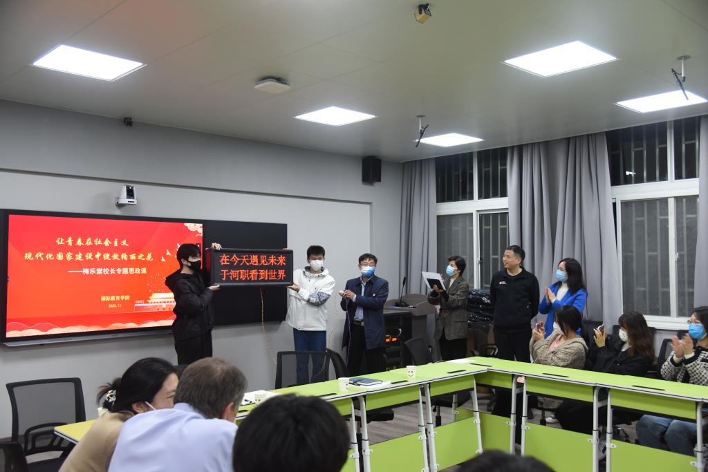 董事长梅乐堂深入联系班级参加主题班会并讲授思政课