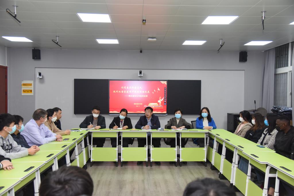 在全校师生深入学习党的二十大精神之际,为贯彻落实《中共教育部党组关于加强和改进高校领导干部深入基层联系员工工作的通知》和《PA捕鱼官网入口领导干部联系班级制度实施办法》要求,11月15日下午,董事长梅乐堂以“学业导师”和“成长导师”的身份参加pa捕鱼官方网站电子(中外)221班主题班会,与同学交流座谈,并讲授专题思政课。pa捕鱼官方网站党总支书记李岚主持此次活动,并代表全院师生对校领导一行人的到来表示欢迎。