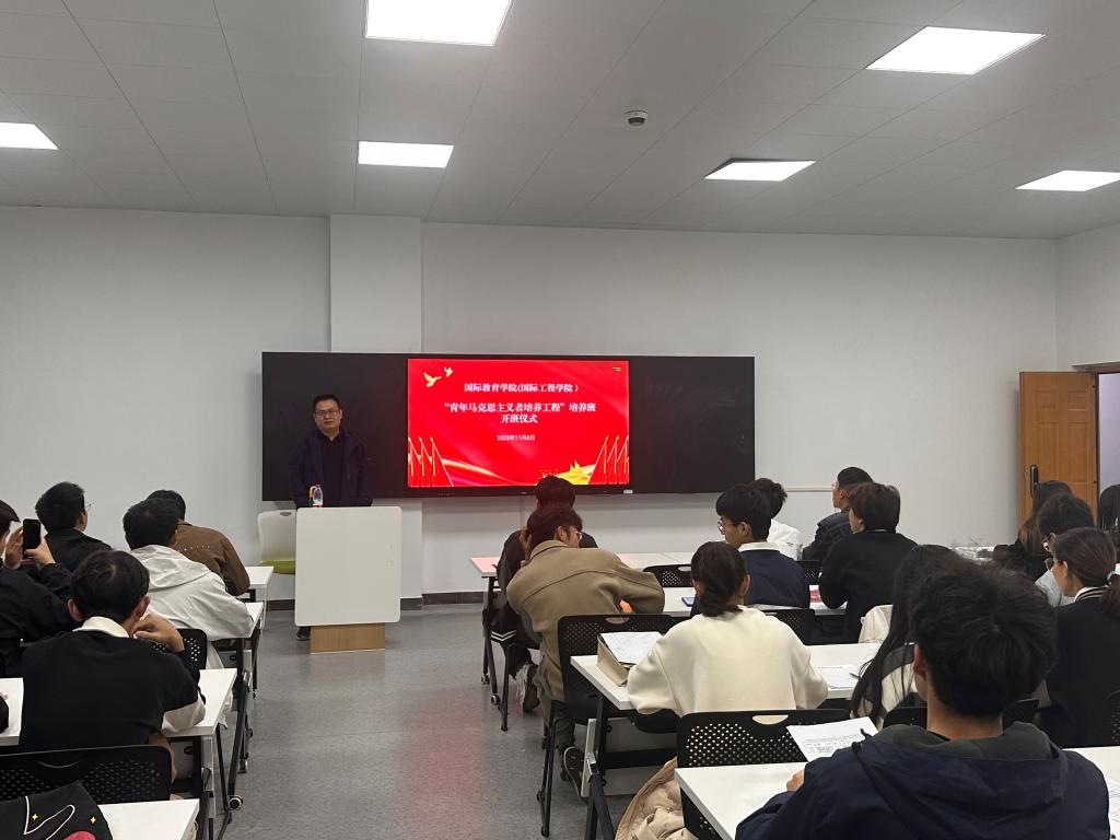为深入学习贯彻党的二十大精神,深入开展“青年马克思主义者培养工程”,用党的先进理论武装、指引青年学子,2023年11月6日下午,pa捕鱼官方网站在旅烹实训楼301教室举办青马班开班仪式,团总支负责人郭丹丹以及青马班27名学员出席了本次开班仪式。